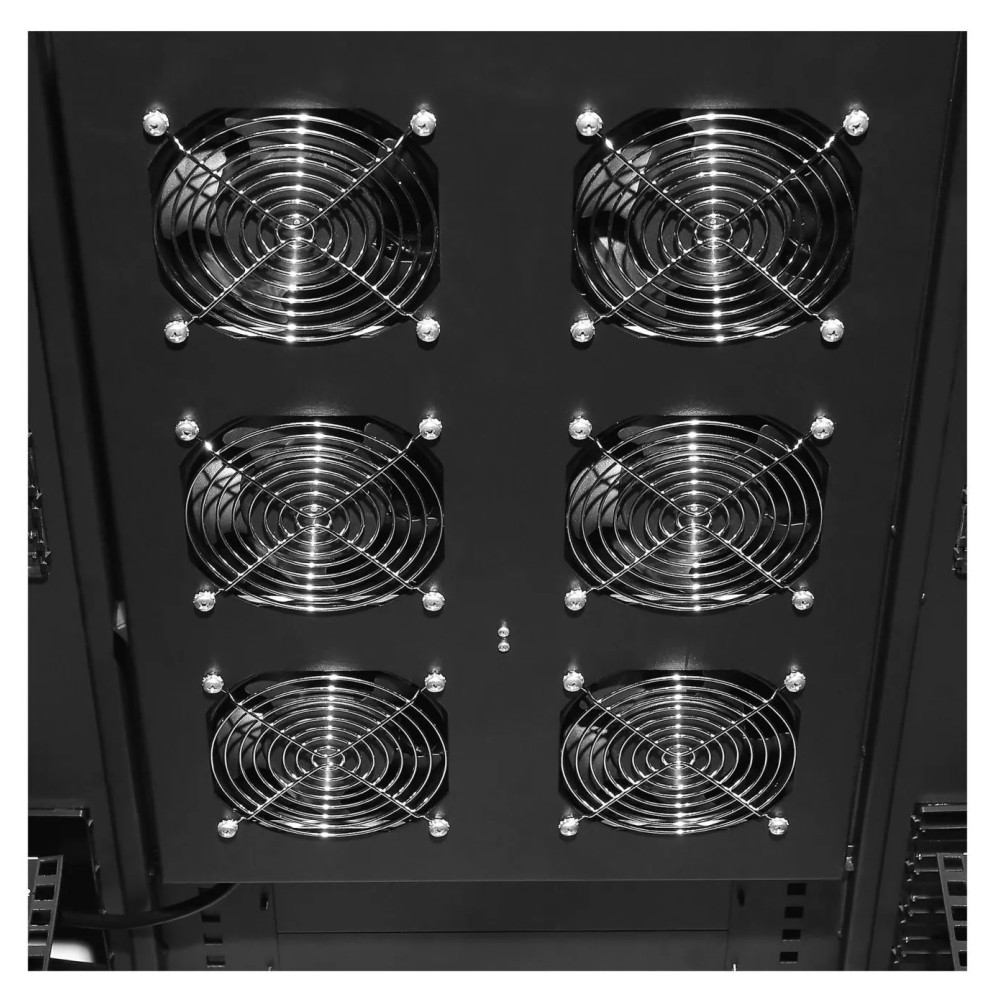 CyberPower Carbon Rack Fans help distribute and channel air through racks to keep IT equipment within optimal operating temperatures. Featured here is the CRA11001 Carbon Rack Fan. It improves ventilation in the CR42U11001 Rack enclosure. The fan panel has (6) 120 Vac high-performance fans and a 6.5 ft power cord with NEMA 5-15P input plug. Mounting hardware is included. The CRA11001 is covered by a 2-year limited warranty.