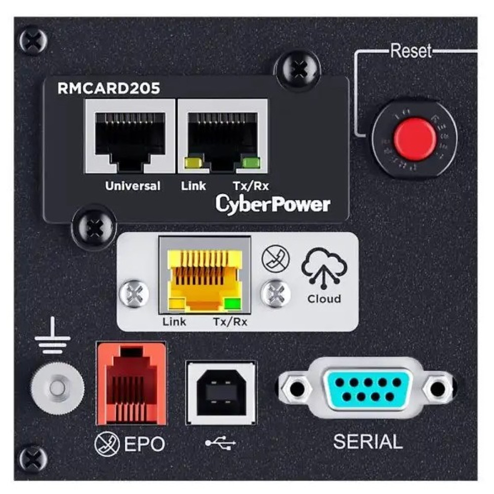 This model accepts the RMCARD205 network management card for remote management and control via a standard web browser or network management system and includes built-in cloud monitoring.