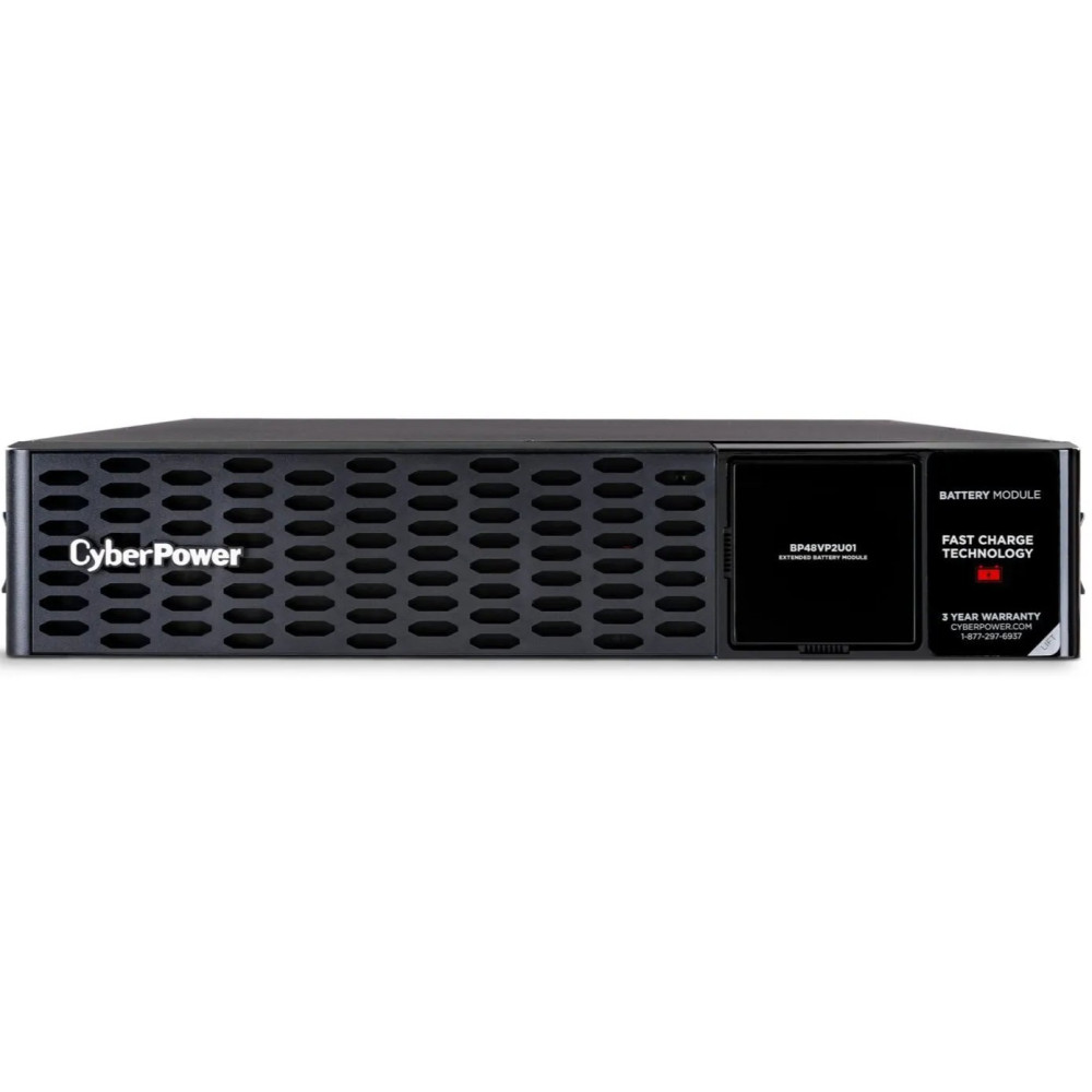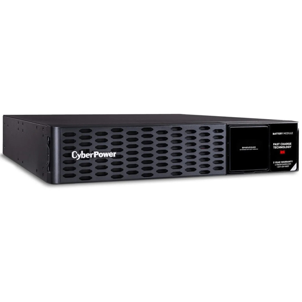 The CyberPower BP48VP2U01 is a rack/tower convertible Extended Battery Module (EBM) that extends battery runtimes during power outages and is designed for the following UPS systems: PR750RTXL2UC and PR1000RTXL2UC. The DC plug-and-play power connectors allow for daisy-chaining additional EBMs to the UPS system. The EBM also has a built-in battery charger, providing Fast Charge Technology to quickly restore the backup power supply to full capacity.