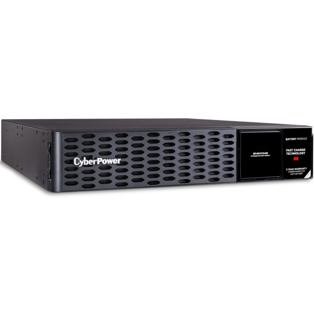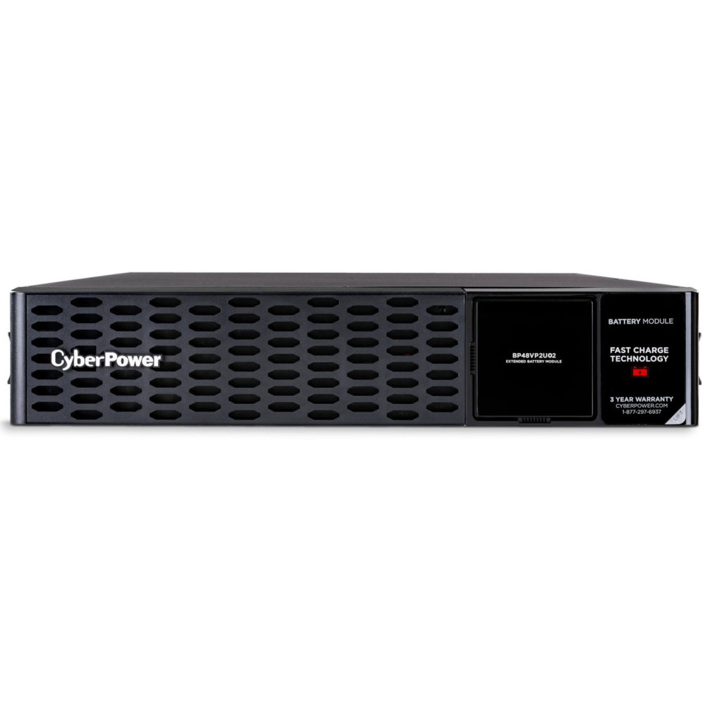 The CyberPower BP48VP2U02 is a rack/tower convertible Extended Battery Module (EBM) that extends battery runtimes during power outages and is designed for the following UPS systems: PR1500RTXL2UC, PR2000RTXL2UC, PR2200RTXL2UC, and PR3000RTXL2UC. The DC plug-and-play power connectors allow for daisy-chaining additional EBMs to the UPS system. The EBM also has a built-in battery charger, providing Fast Charge Technology to quickly restore the backup power supply to full capacity.