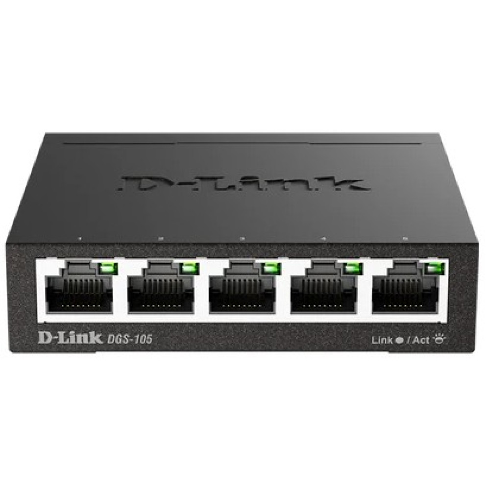 The DGS-105 5-Port Gigabit Unmanaged Desktop Switch offers an economical way for SOHO and small and medium businesses to benefit from the increased bandwidth of Gigabit Ethernet. It provides five Gigabit ports for easy expansion of your network and a quick way to upgrade your network to Gigabit connectivity. The DGS-105 is designed with durability and performance in mind. Its sturdy metal housing ensures the product can withstand wider operating by helping to dissipate heat and reduce stress on internal components.
