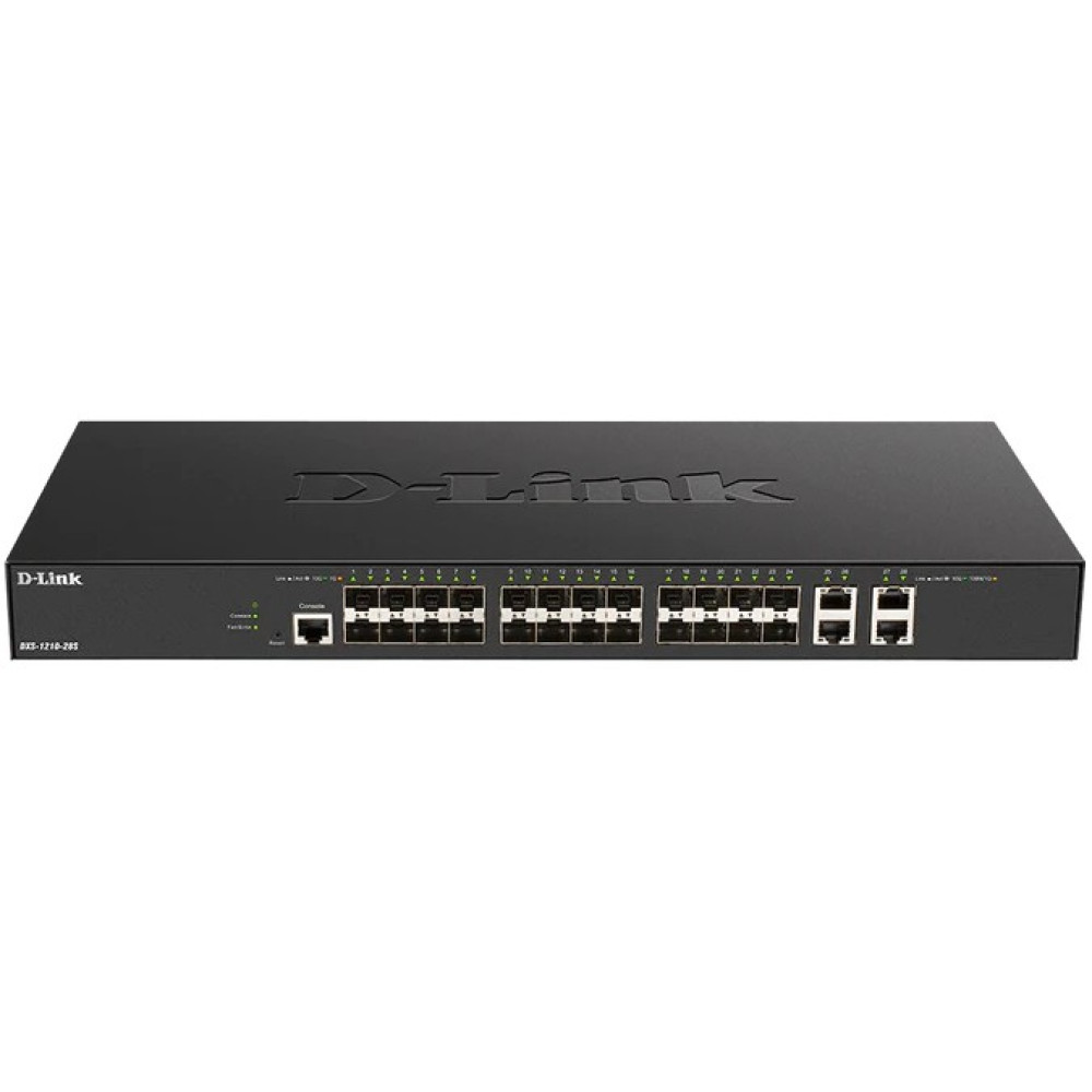 The DXS-1210-28S is a high-port 10G switch perfect for an SMB core switch or an Enterprise aggregation switch. The managed switch features twenty-four 1G/10G SFP+ ports and four 10G BASE-T ports. With high performance and low latency, this smart managed switch fulfills the needs of virtualization, cloud services, and server-to-server applications.