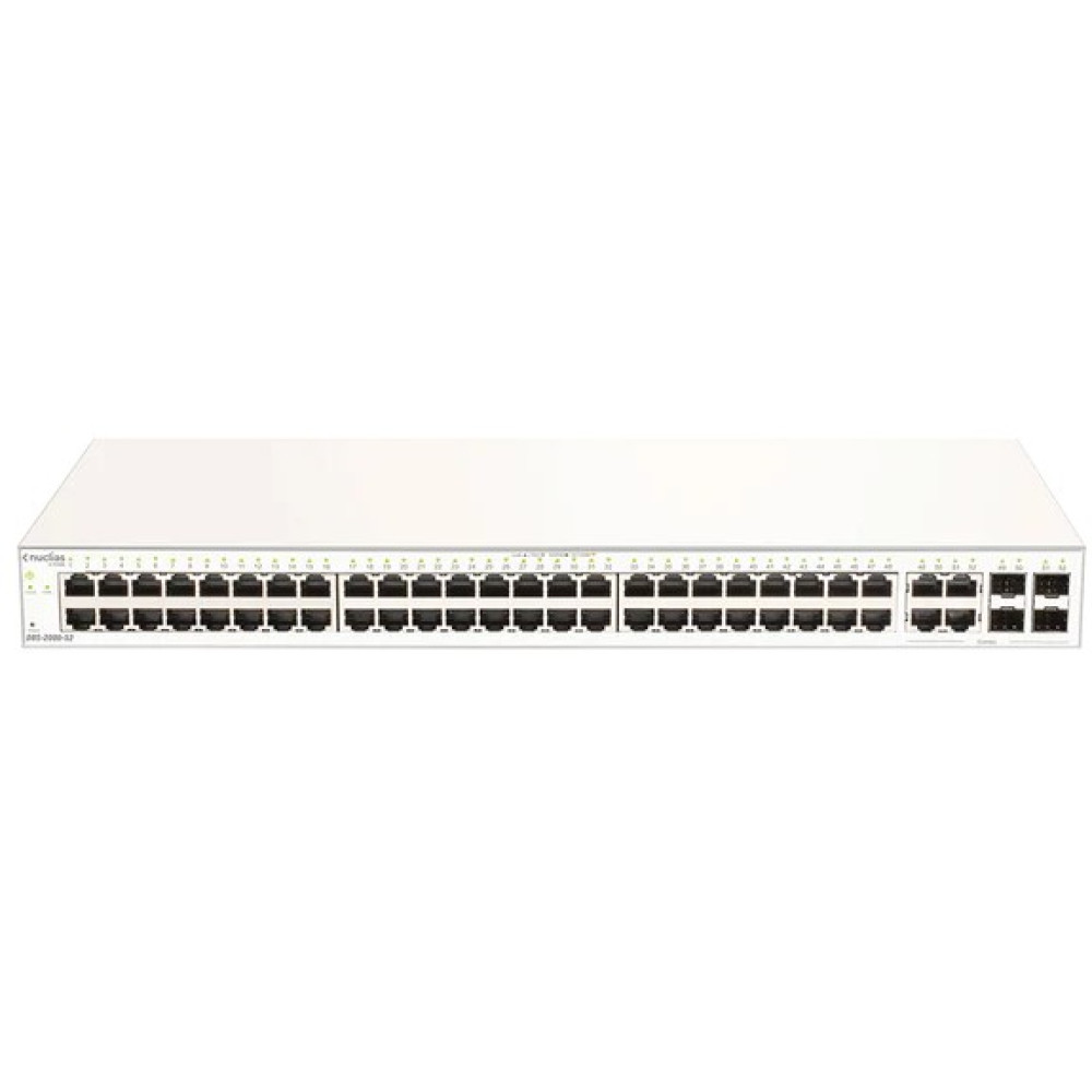 The DBS-2000-52 Nuclias Cloud-Managed Switch is deployed as a pre-configured, zero configuration switch controlled through the Nuclias Cloud. It is a best-in-class switch designed specifically for distributed networks, featuring 52 ports with 4 combo GE/SFP ports.