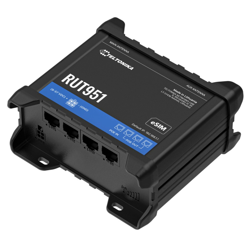 Teltonika RUT951PoE+ Industrial PoE+ 4G Cellular Router, 4 Fast Ethernet, Wi-Fi, Digital I/O