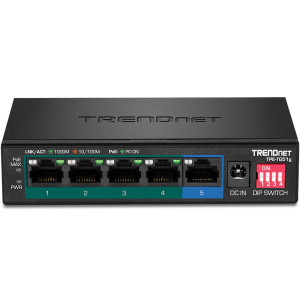 TRENDnet’s TPE-TG51g 5-Port Gigabit PoE+ Switch delivers data and power over existing Ethernet cables to Power over Ethernet (PoE) devices, such as access points and IP cameras. This long-range PoE switch supports both PoE and PoE+ devices with a 60W PoE power budget. Enable the DIP switch to extend the PoE+ signal up to 200m (656 ft.) at 10Mbps for long distance PoE installations. Ideal for surveillance networking applications, the DIP switch also enables port isolation on ports 1 - 4 Easily install this long-range PoE switch for reliable high-speed PoE networking. The gigabit ports provide a 10Gbps switching capacity to support edge network installations.