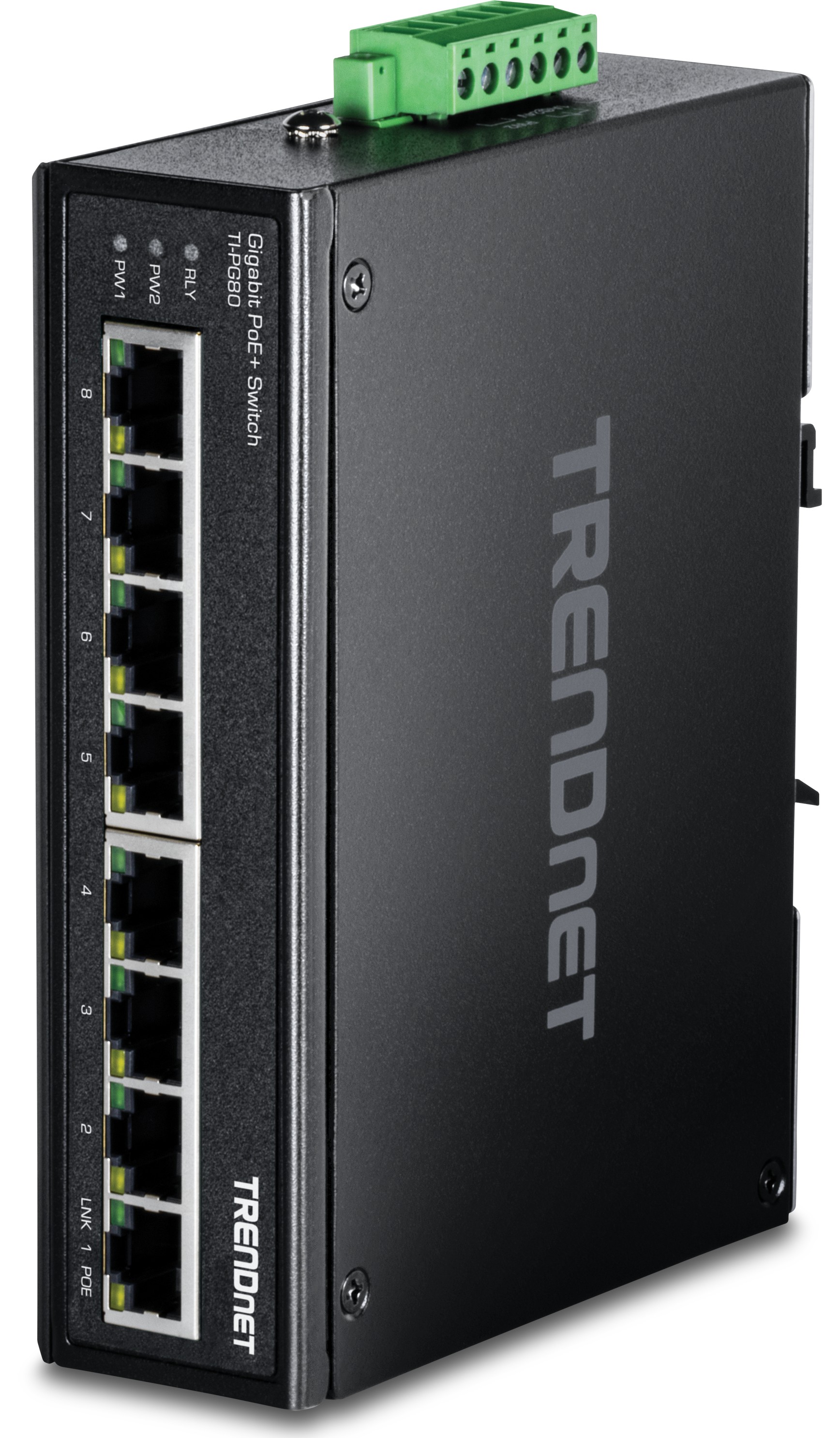 TRENDnet TI-PG80 8-Port Industrial Gigabit Unmanaged PoE+ DIN-Rail Switch