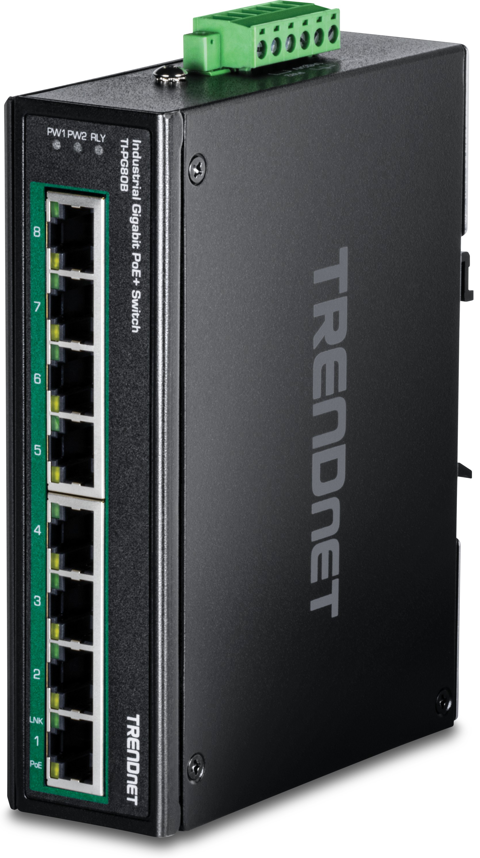 TRENDnet TI-PG80B 8-Port Industrial Gigabit PoE+ DIN-Rail Switch (24-56V)