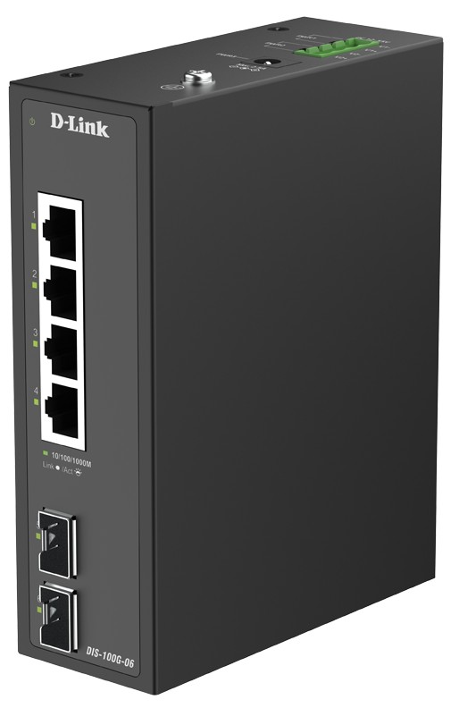 D-Link DIS-100G-06 6-Port Industrial Gigabit Unmanaged Switch with 2 SFP Slots