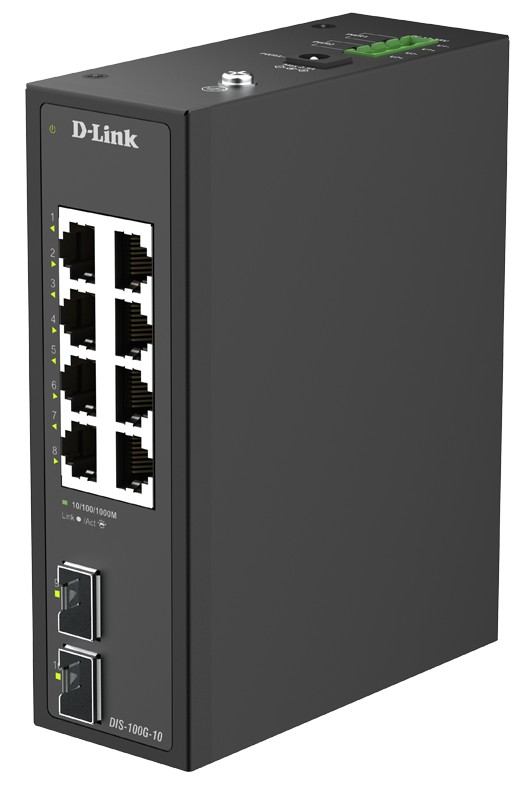 D-Link DIS-100G-10 10-Port Industrial Gigabit Unmanaged Switch with 2 SFP Slots