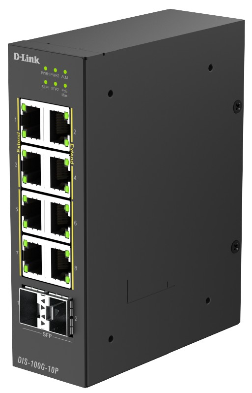 D-Link DIS-100G-10P 10-Port Industrial Gigabit Unmanaged PoE+ Switch with 2 SFPs