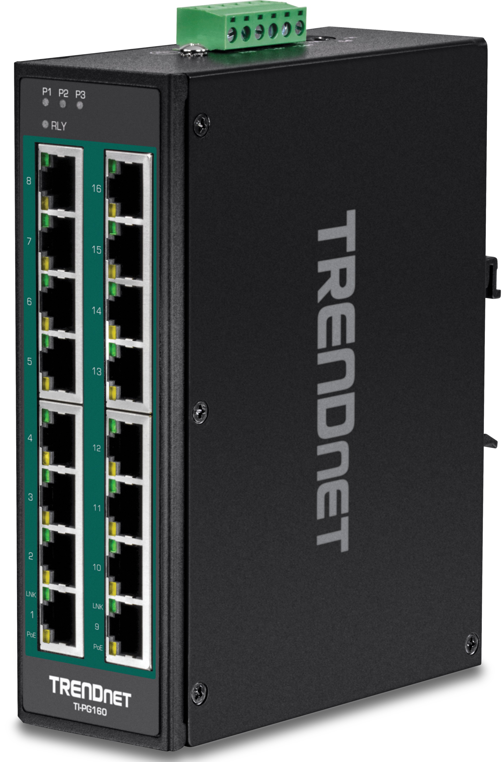 TRENDnet TI-PG160 16-Port Industrial Gigabit PoE+ DIN-Rail Switch