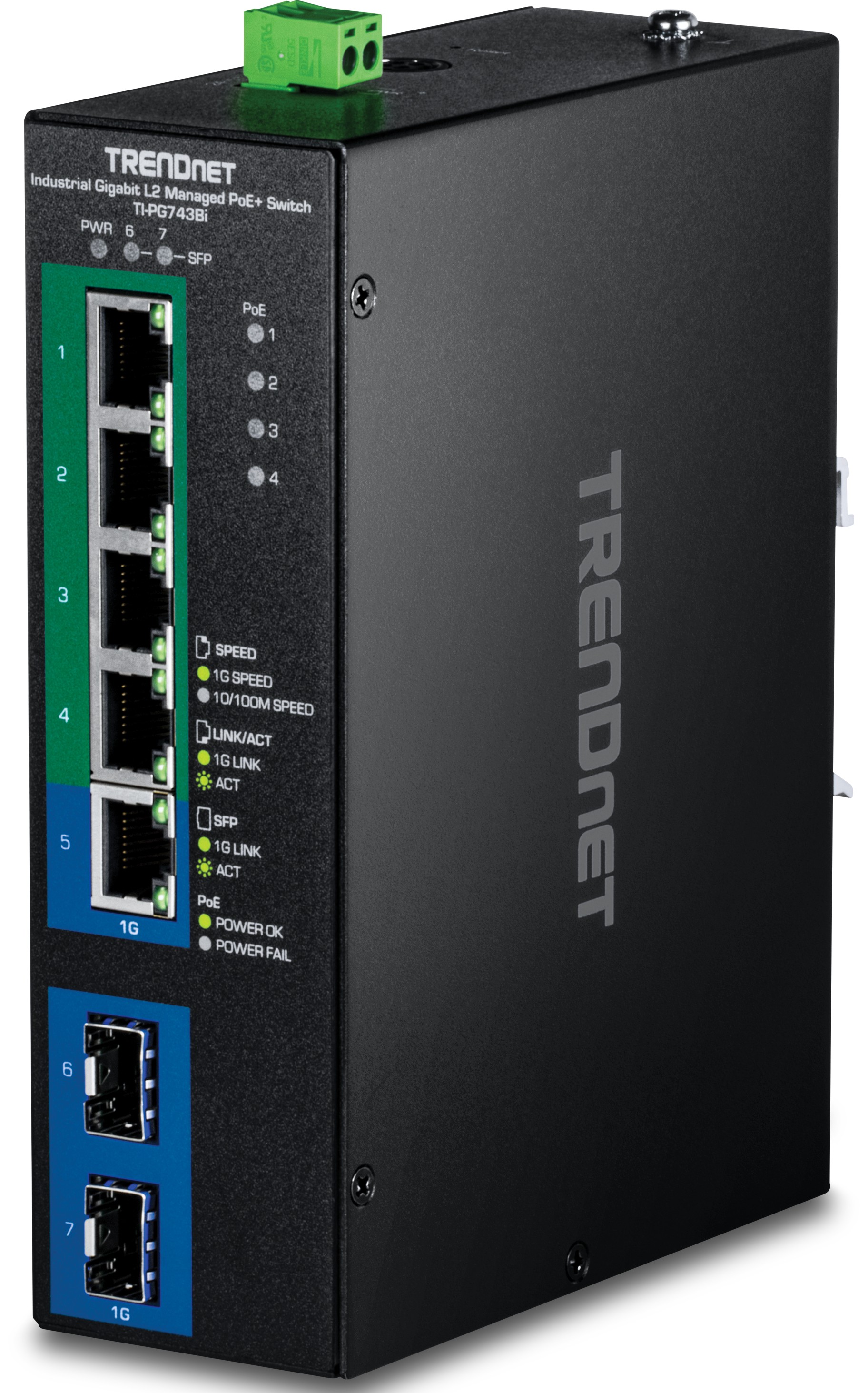 TRENDnet TI-PG743Bi 7-Port Industrial Gigabit L2 Managed PoE+ DIN-Rail Switch