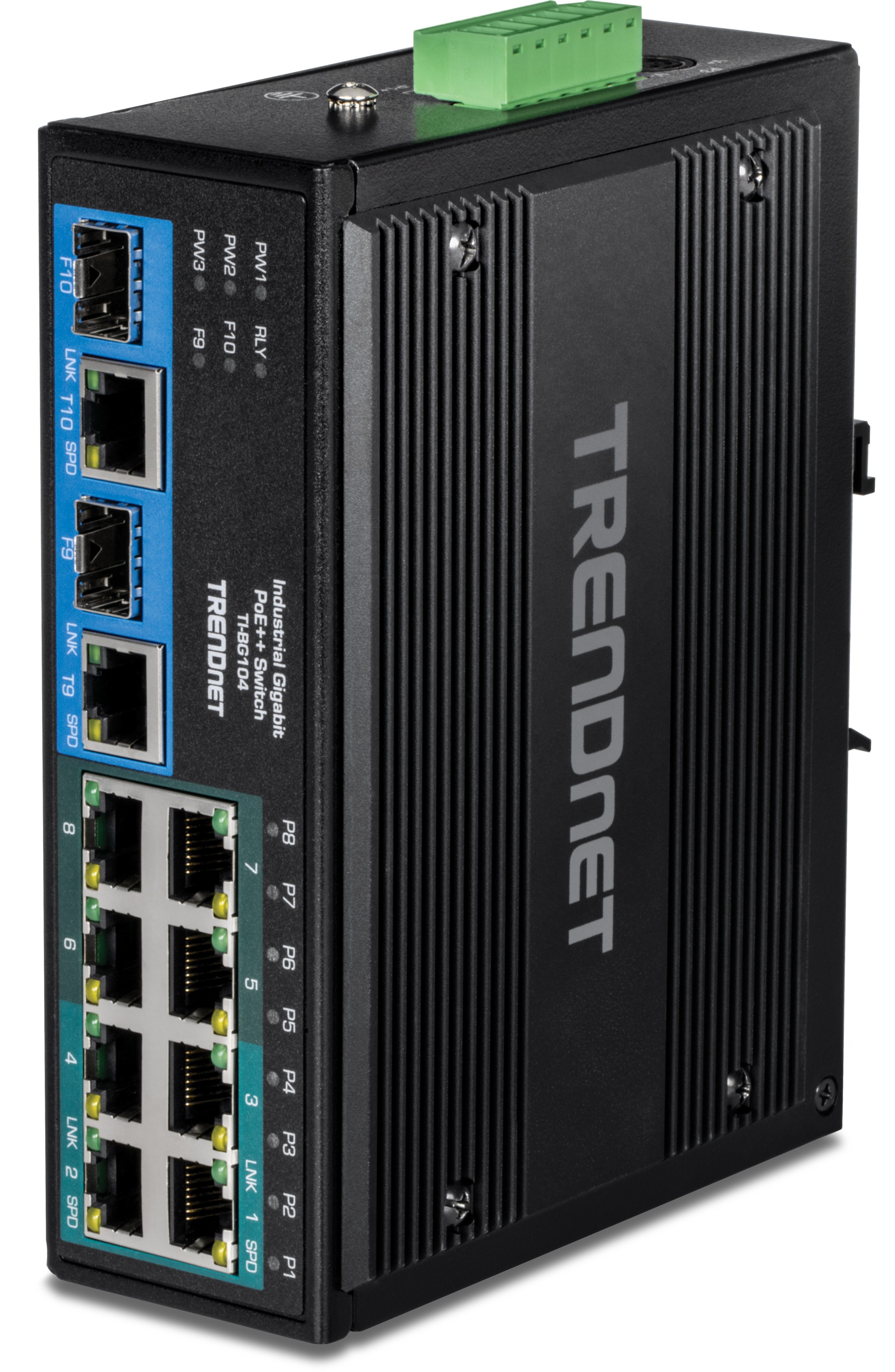 TRENDnet TI-BG104 10-Port Industrial Gigabit 370W PoE++ DIN-Rail Switch