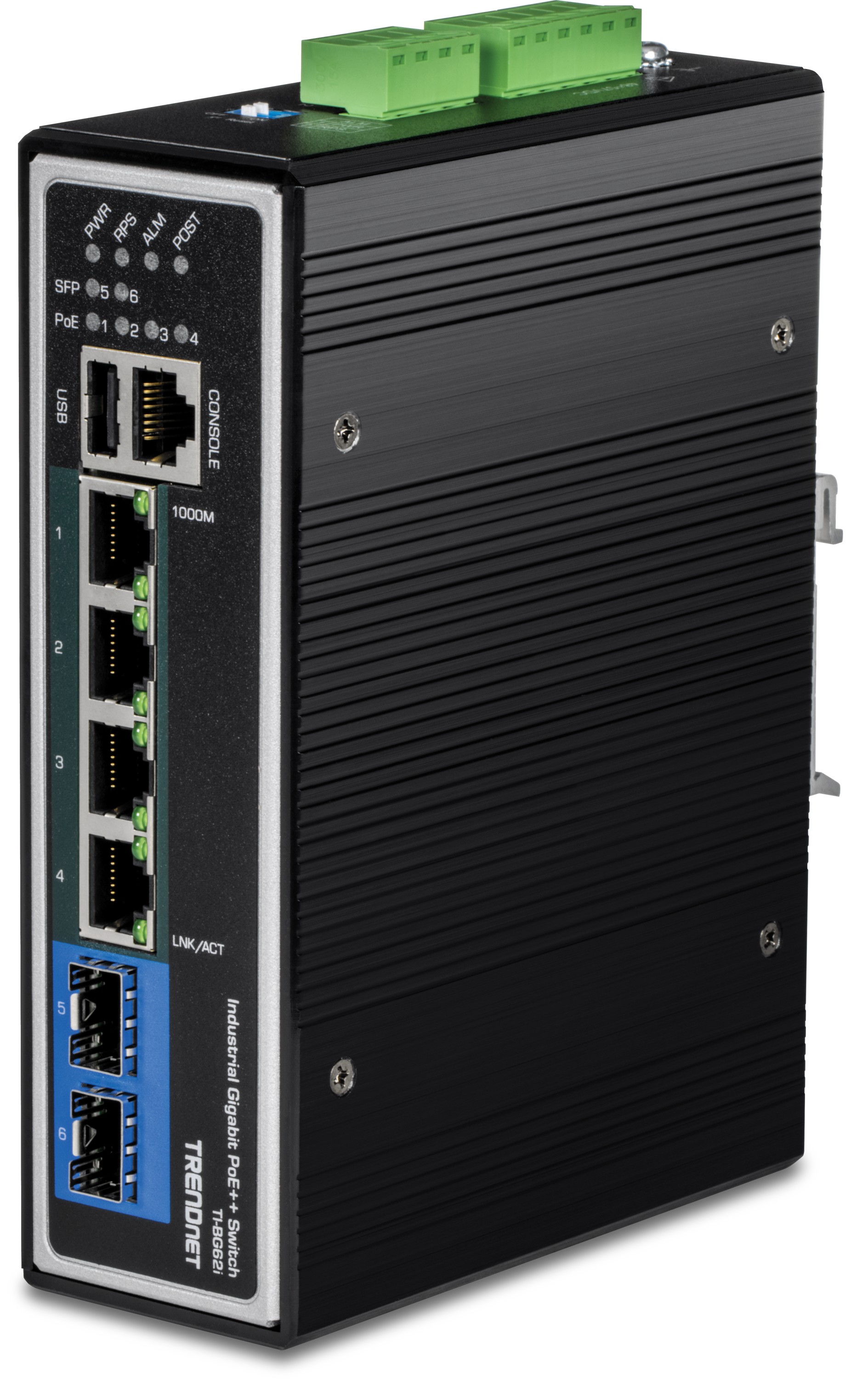 TRENDnet TI-BG62i 6-Port Industrial Gigabit L2+ Managed PoE++ DIN-Rail Switch