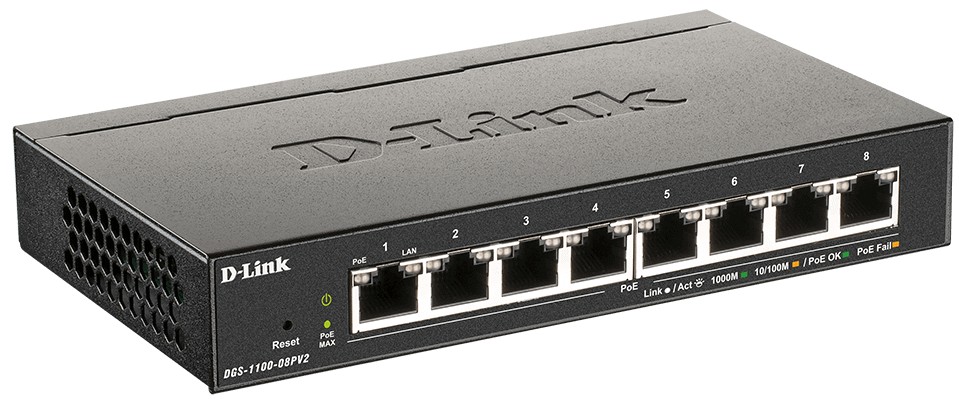 D-Link DGS-1100-08PV2 8-Port Gigabit Smart Web Managed PoE+ Switch