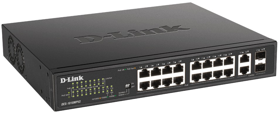 D-Link DES-1018MPV2 18-Port Fast Ethernet PoE Unmanaged Desktop Switch