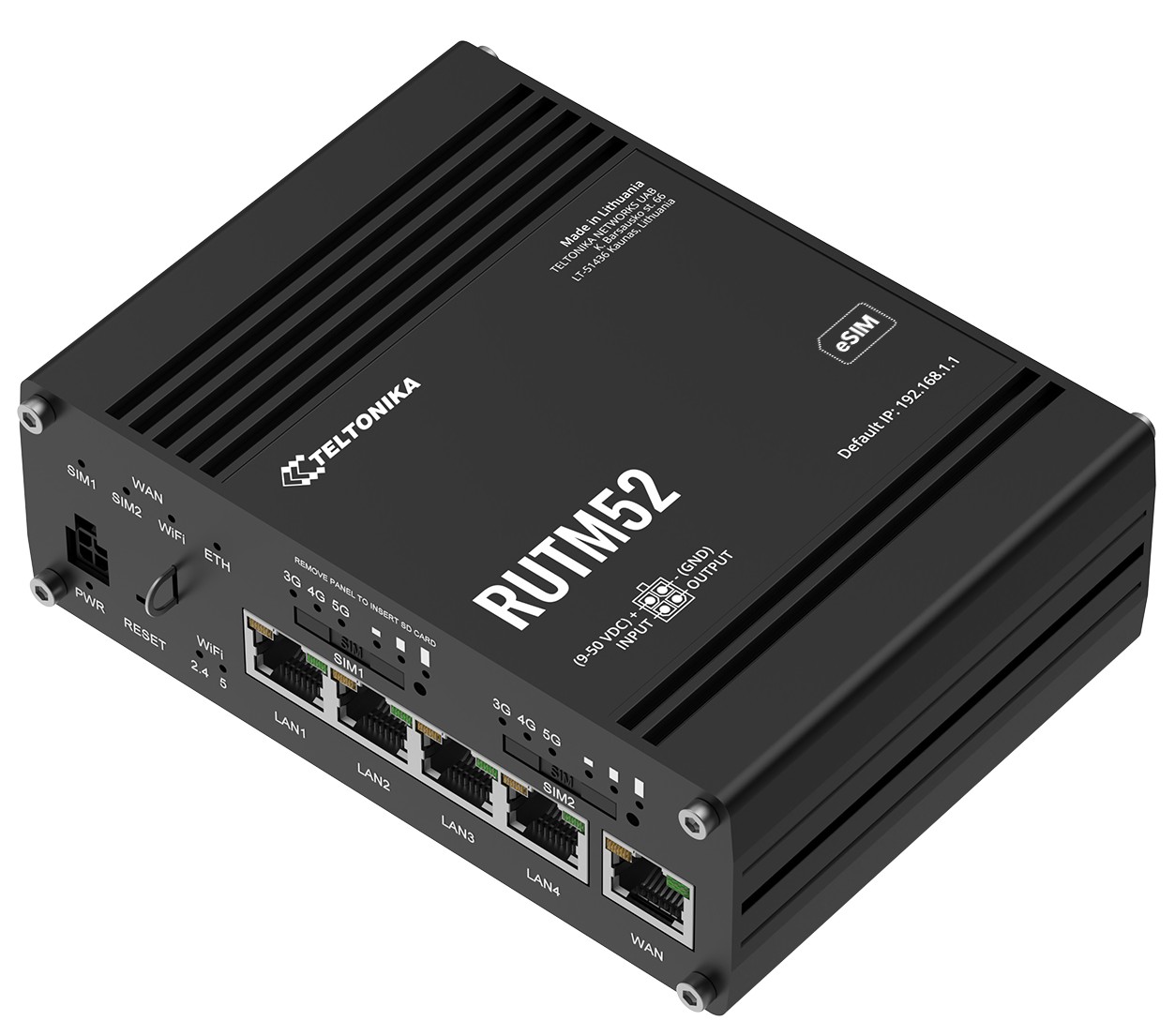 Teltonika RUTM52 Dual 5G Cellular Router, 5 GbE Ports, WiFi, GPS, Antennas